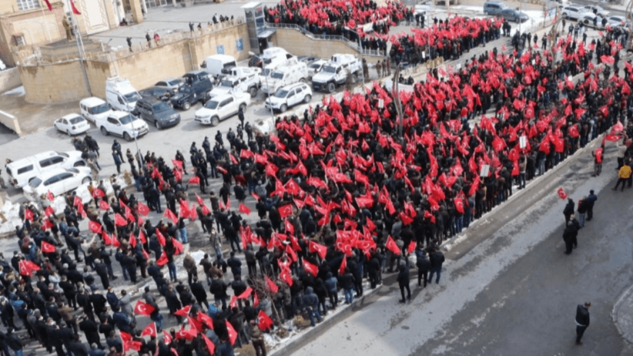Ellerinde Türk bayraklarıyla "Hakkari teröre karşı tek yürek" ve "terörü lanetliyoruz" pankartları açan kent sakinleri, Gara'da şehit edilen Türk vatandaşlarının fotoğraflarını taşıyıp terör örgütü PKK aleyhine slogan atarak Valilik binasına kadar yürüdü.