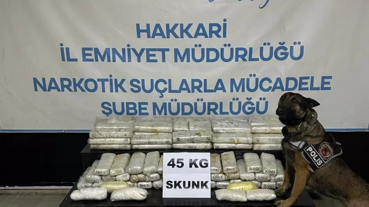 Hakkari'nin Yüksekova ilçesinde tırın dorsesinde 45 kilogram skunk ve 16 kilo 2 gram sentetik uyuşturucu bulundu.