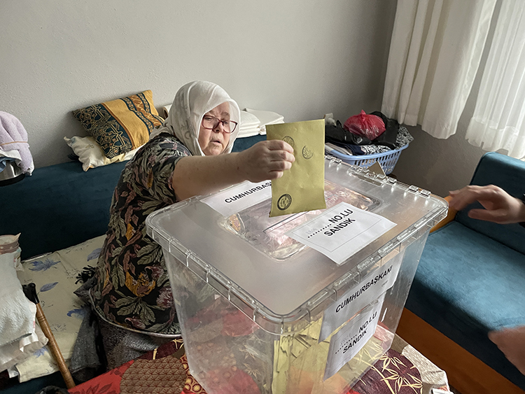 İl Seçim Kurulu görevlileri, hastalığı ya da engeli nedeniyle oy kullanmaya gidemeyen vatandaşların evine seyyar sandık götürdü.