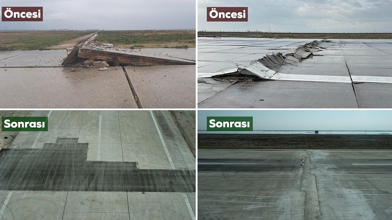 Hatay Havalimanı pistindeki hasarı hızlıca onardık.