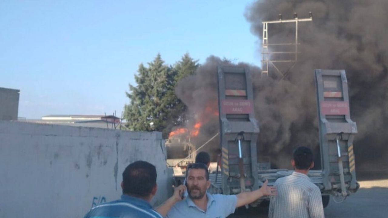 Olay yerine çağrılan itfaiye ekipleri yangını söndürürken sağlık ekipleri TIR'daki 2 askerin şehit olduğunu belirledi. (AA)