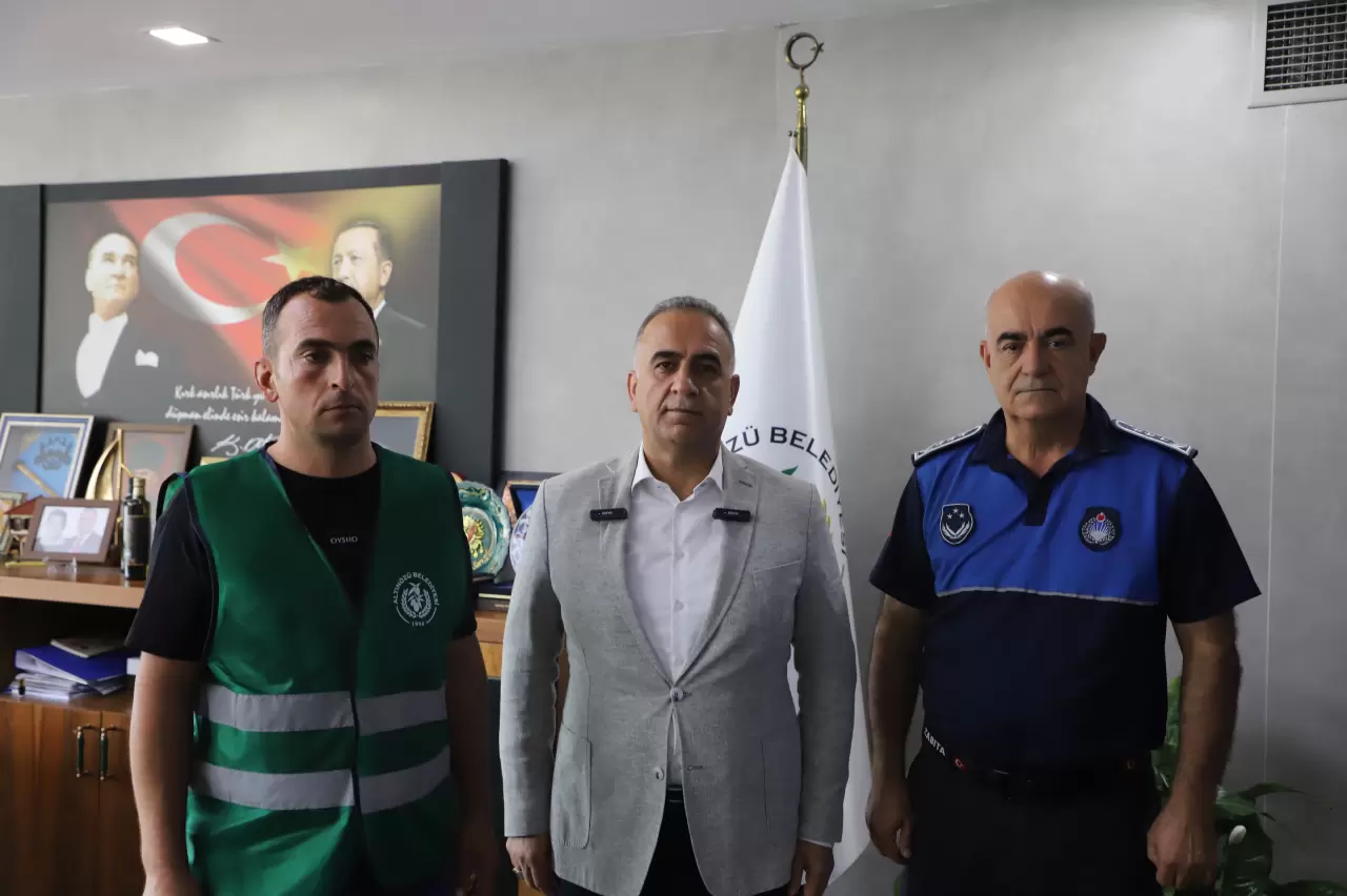 Hatay'ın Altınözü ilçesinde parkta temizlik yapan işçi tarafından bulunan içerisinde altın ve döviz olan çanta, sahibine teslim edildi.