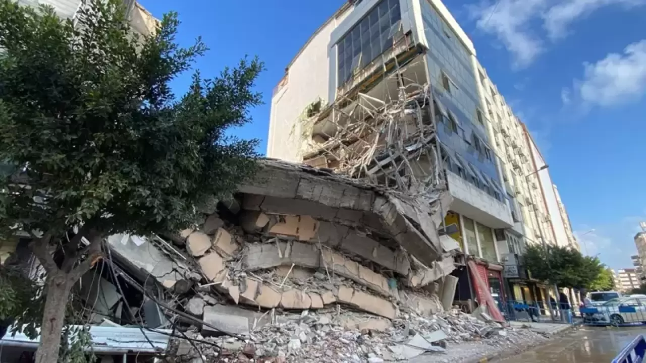 Asrın felaketinde büyük hasar alan Hatay'da mahkeme süreci devam eden binaların yıkımları sürerken, İskenderun ilçesi Şehit Pamir Caddesi'nde yıkımı gerçekleştirilen 6 katlı hasarlı bina çöktü.