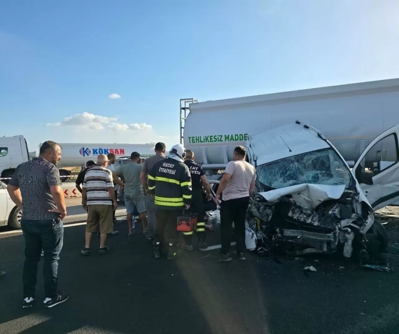 Hatay’ın Erzin ilçesinde, İskenderun-Adana otoyolu serbest bölge mevkiinde hafif ticari araç ile tanker çarpıştı.