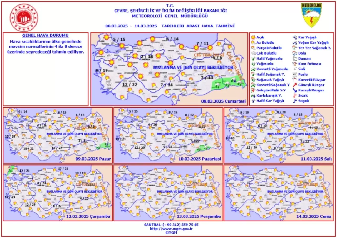 Meteoroloji Genel Müdürlüğü tarafından yapılan son tahminlere göre, önümüzdeki hafta da hava sıcaklıkları artmaya devam ederek, ülke genelinde mevsim normallerinin 4 ila 8 derece üzerinde seyredecek.