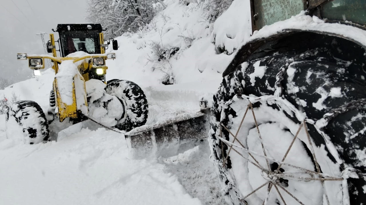 Kastamonu'nun Cide ilçesinde vefat eden bir kadının cenazesi, kar sebebiyle yolu kapanan köye güçlükle ulaştırılabildi.