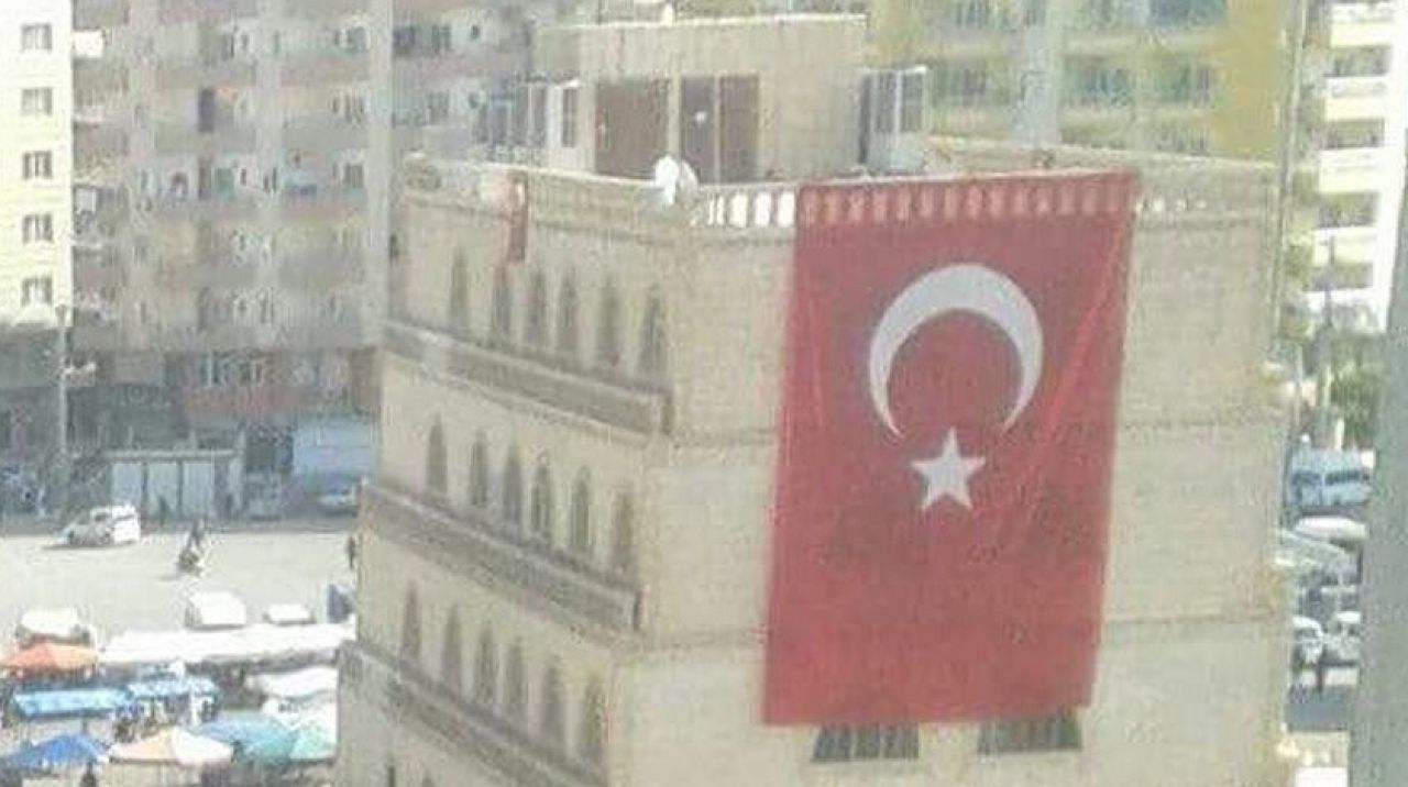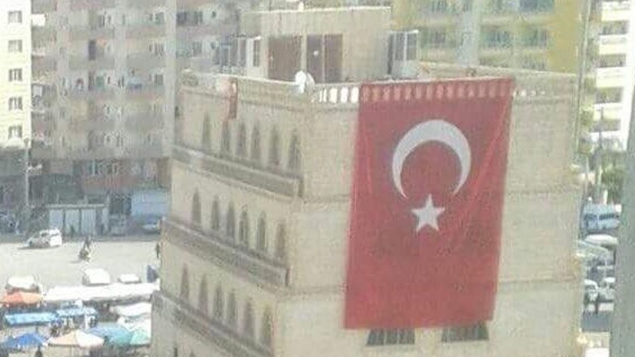 Göreve başlamasıyla kayyım döneminde binaya asılan Türk bayraklarının belediye binasından kaldırıldığı görüldü.