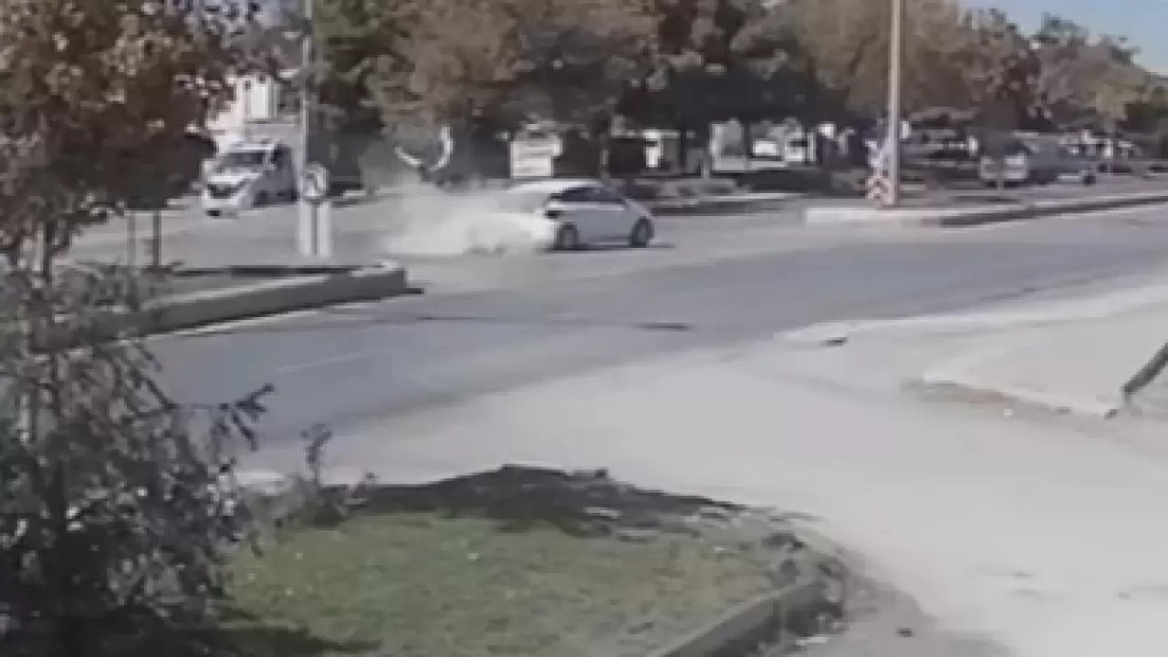 Sürücüsünün direksiyon hakimiyetini kaybetmesi sonucu devrilen motosikletten düşen Mustafa U. yaralandı. Kaza anı, çevredeki bir güvenlik kamerasınca anbean kaydedildi.