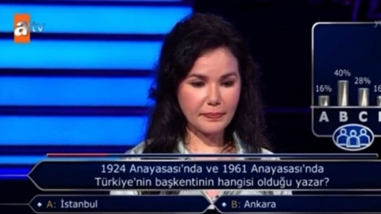 ATV'de ekrana gelen Kim Milyoner Olmak İster isimli bilgi yarışmasının son bölümünde çok ilginç anlar yaşandı. Tıp fakültesi öğrencisi olduğunu söyleyen Name Çığra Coşkun isimli genç kıza "1924 Anayasası'nda ve 1961 Anayasası'nda Türkiye'nin başkentinin hangisi olduğu yazar?" sorusu soruldu.
