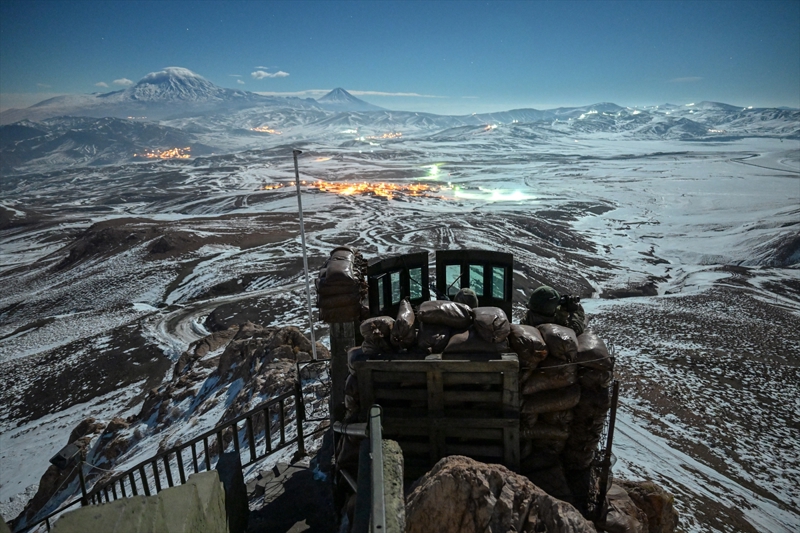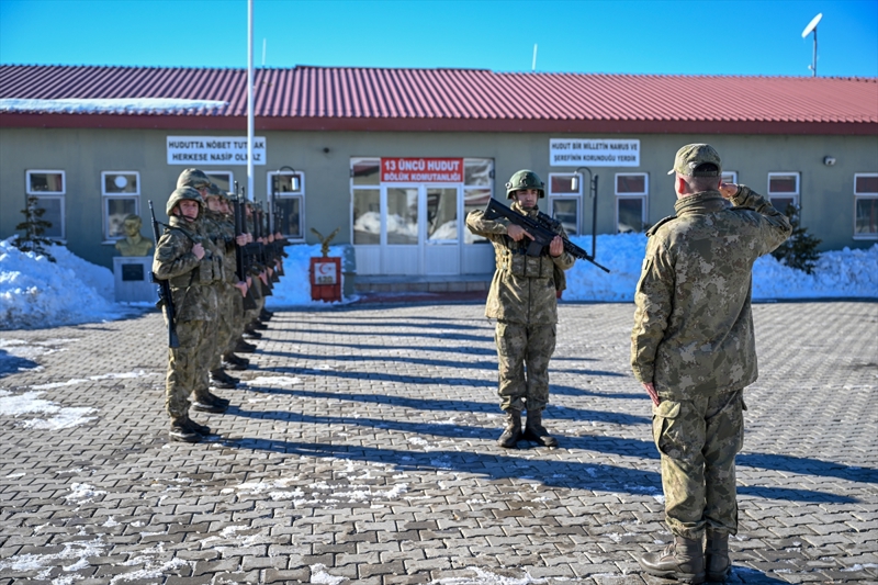 Ağrı Doğubayazıt'taki 5'inci Hudut Tugayı 4'üncü Hudut Taburuna bağlı, 2 bin 800 rakımda konuşlu 13. Hudut Bölük Komutanlığında görev yapan askerler, yeni yılda da görevinin başındaydı.