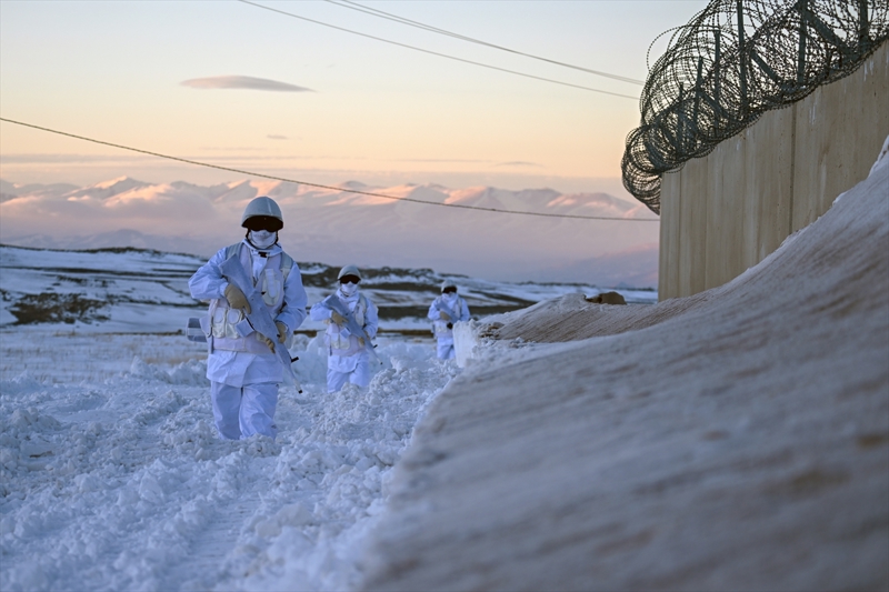 Yerli ve milli teknolojik cihaz ve silahlarla sınır güvenliğini 7 gün 24 saat esasına göre sağlayan 'hudut kartalları' zorlu iklim koşulları ve zaman zaman eksi 30 dereceyi bulan çetin kış şartlarına rağmen görevlerini başarıyla sürdürüyor.