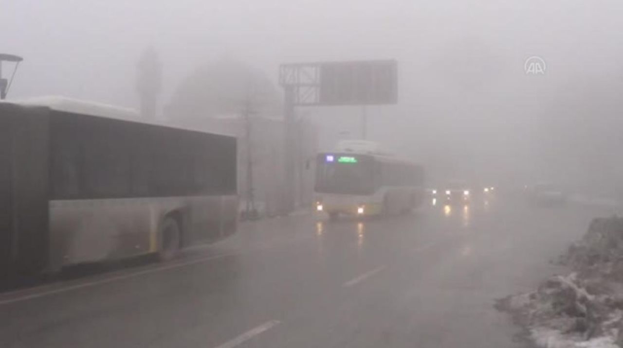Görüş mesafesinin yer yer 10 metrenin altına düştüğü kentte, sürücüler sis farlarını ve dörtlü ikaz lambalarını açarak ilerleyebildi.