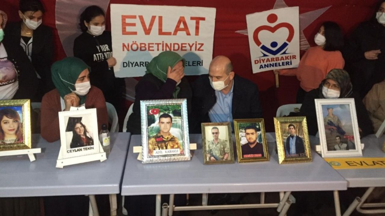 İçişleri Bakanı Süleyman Soylu, dağa kaçırılan çocukları için HDP İl Başkanlığı binası önünde evlat nöbetini sürdüren Diyarbakır annelerini ziyaret etti. Annelerle eylemi sürdürdükleri çadırda bir araya gelen Soylu, ailelerin sorun ve taleplerini dinledi.