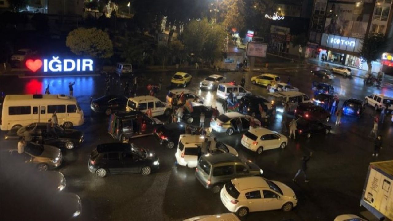 Tamamı sosyal medya üzerinden organize olan grup, buradan araçlarla caddelerde tur atarak Azerbaycan ve Türkiye bayrakları açıp "Karabağ Azerbaycan'ındır" sloganları attı.