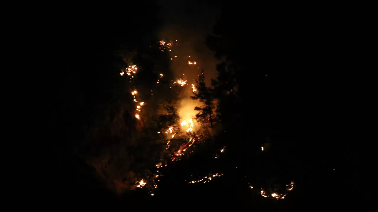 Havanın kararmasıyla helikopterlerin ve uçakların çalışması sonlandırılırken, ekiplerin karadan müdahalesi devam ediyor.