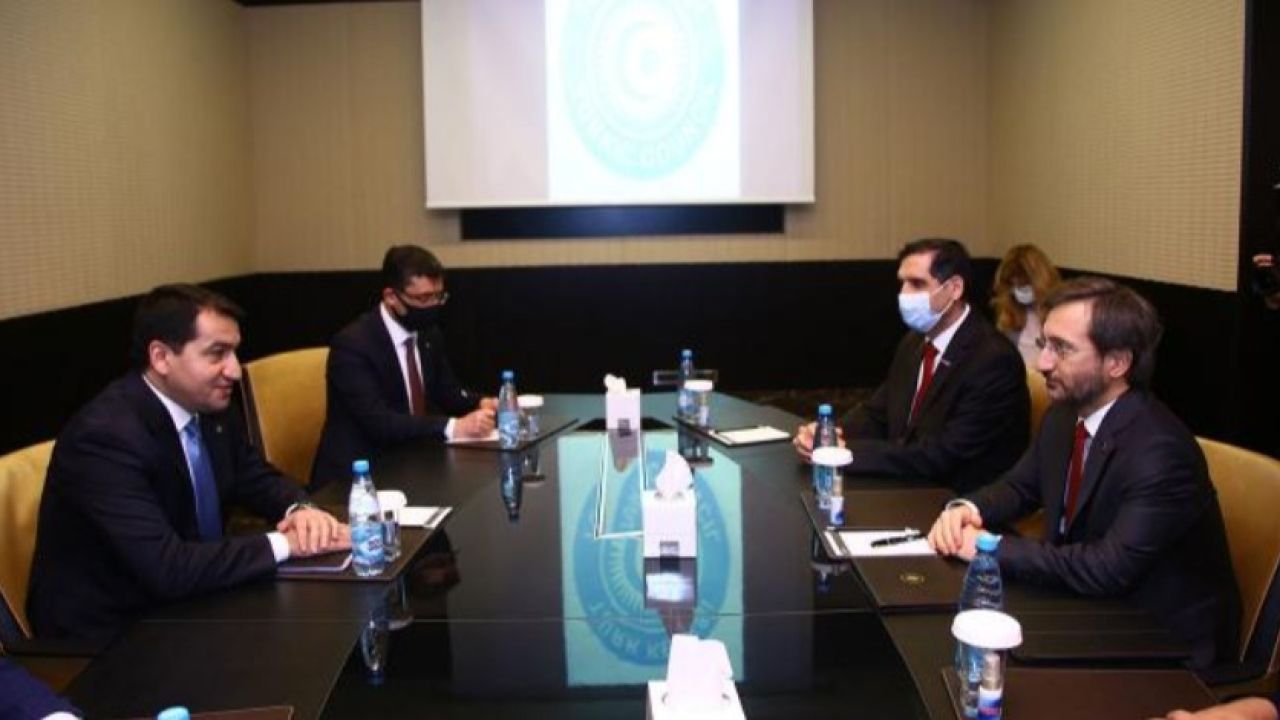 İletişim Başkanı Altun, Türk Konseyi Genel Sekreteri Baghdad Amreyev ve Azerbaycan Cumhurbaşkanı Yardımcısı Hikmet Hacıyev ile görüşme yaptı.