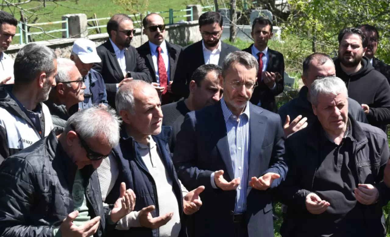 Fahrettin Altun ve yakınları, defin işleminin ardından taziyeleri kabul etti.