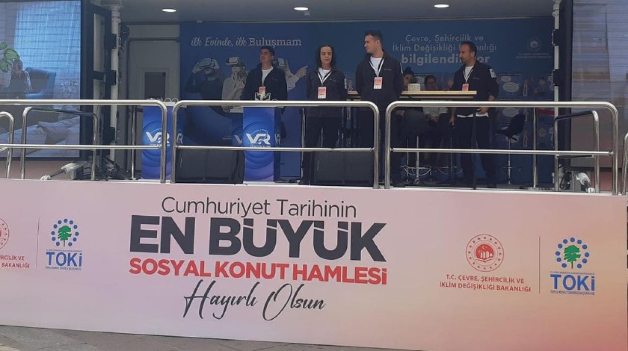 Tırı ziyaret edenler, VR (sanal gerçeklik) gözlükleri sayesinde, daha önce yapımı tamamlanan TOKİ projelerindeki daireleri gezme imkanı buldu.