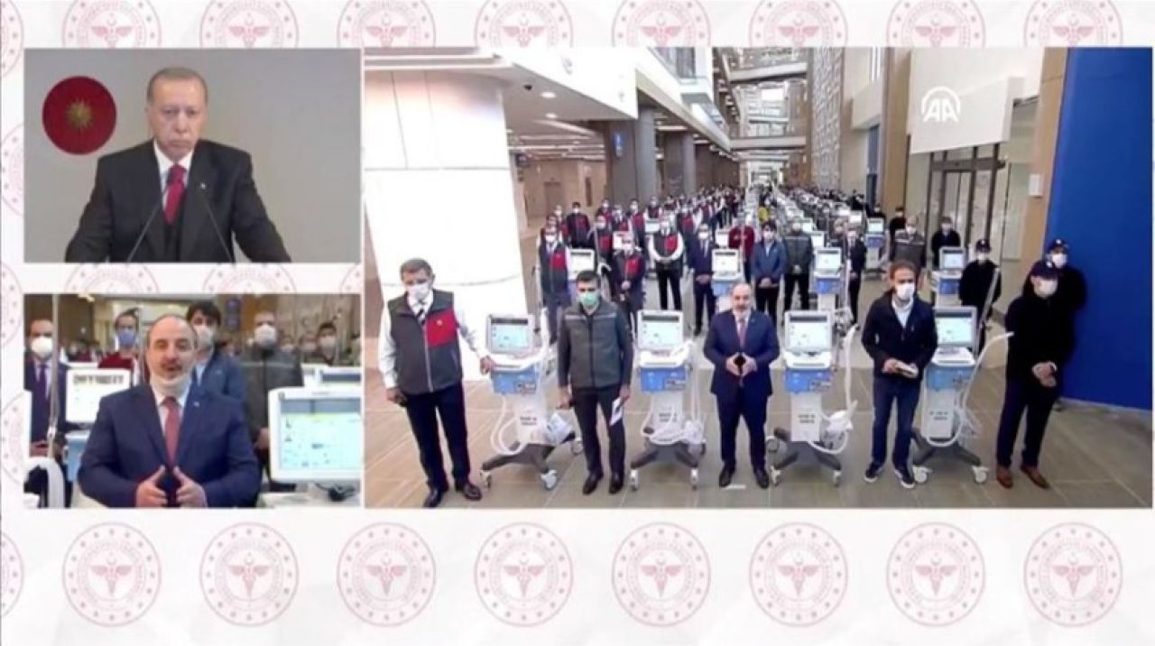 Bu salgın döneminde n çok sorun olan yoğun bakım ve buralarda kullanıla solunum cihazları olmuştur, burada Sağlık Bakanlığımızın öncülüğünde bir protatif firmasının geliştirdiği devamında BAYKAR, ASELSAN ve ARÇELİK tarafından üretilen ventilatörlerin de altını çizmek istiyorum. Yerli ve milli ventilatörümüz bugün itibari ile üretilmiş ve kullanıma hazır hale getirilmiştir, Şu anda 100 adettir Mayıs ayı itibari ile 5 bine kadar üretilmesini planladık siparişini vermiş olduk.
