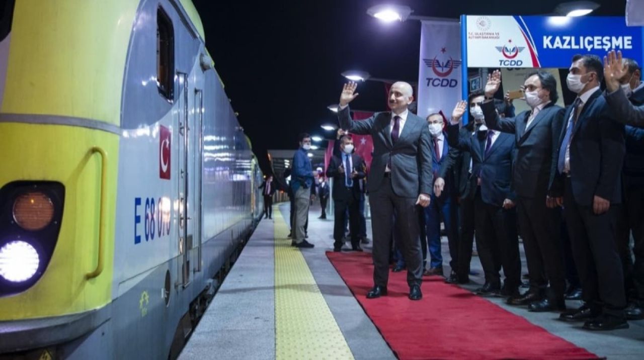 "Bu yıl içerisinde Ankara-Sivas hızlı tren hattını hizmete almaya çalışıyoruz. Ankara-İzmir hattında çalışmalar sürüyor. Bursa, Yenişehir, Osmaneli, Adana, Mersin gibi ülkemizin her yerinde demir yolu yatırımlarımız hızla ilerliyor. Biliyorsunuz kasımda Pekin'den kalkan yük trenini orta koridoru kullanarak Avrupa'ya geçirmiştik. İlk yurt dışı yük taşımacılığını yapmıştı."