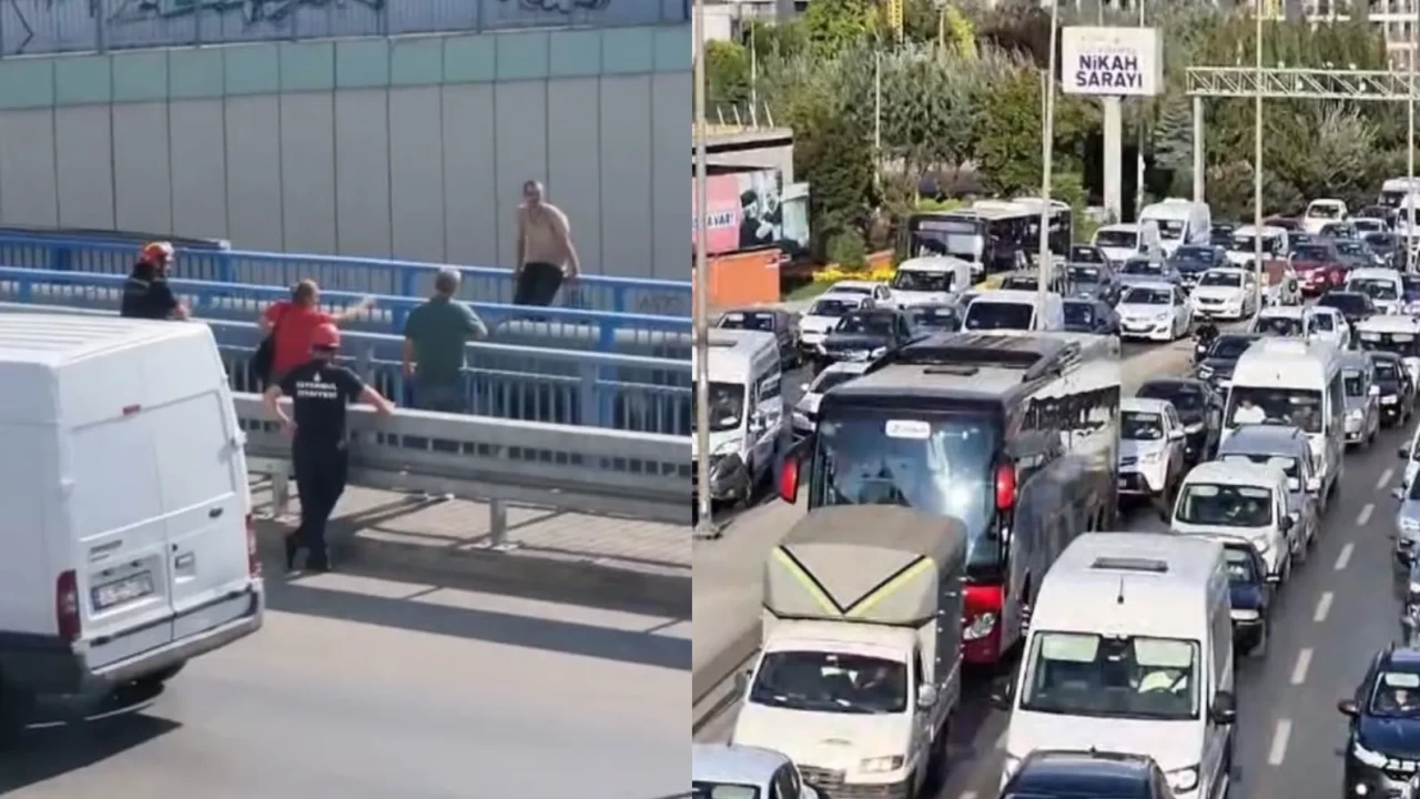 Olay, saat 17.00 sıralarında Küçükçekmece E-5 üzerindeki bir üst geçitte yaşandı. İddiaya göre, işsiz olduğunu belirterek üst geçidin üzerine çıkan bir şahıs intihar etmek istedi.