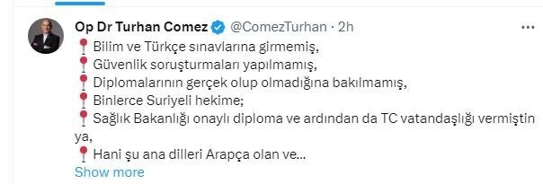 İP'den Balıkesir Milletvekili olan Çömez, sosyal medya hesabından ırkçı bir paylaşım yaparak, derdinin Millet ve hizmet olmadığını bir kez daha gösterdi. Sağlık Bakanlığının Gazze'de masum çocuklar ve siviller için hzırladığı yardım uçağıyla dalga geçen Çömez, Türkiye'de görev yapan Suriyeli Doktorlarla adeta alay etti.