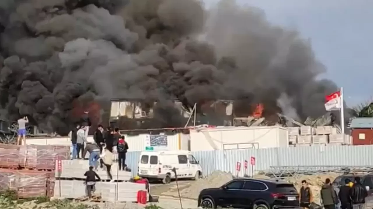 Taşoluk Mahallesi Egemen Caddesi'ndeki işçi konteynerlerinde henüz belirlenemeyen nedenle yangın çıktı.