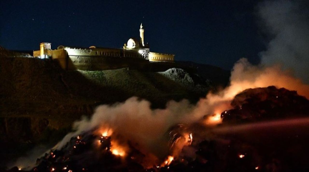 Alınan bilgiye göre, ilçe merkezine 7 kilometre uzaklıkta bulunan tarihi İshak Paşa Sarayı, Urartu Kalesi ve Eski Bayezit Camisi’nin de içinde bulunduğu bölgede uçurulan bir dilek balonu, rüzgarın da etkisiyle Yemlihan Tan’ın evinin önünde bulunan ot yığınlarının üzerine düştü.