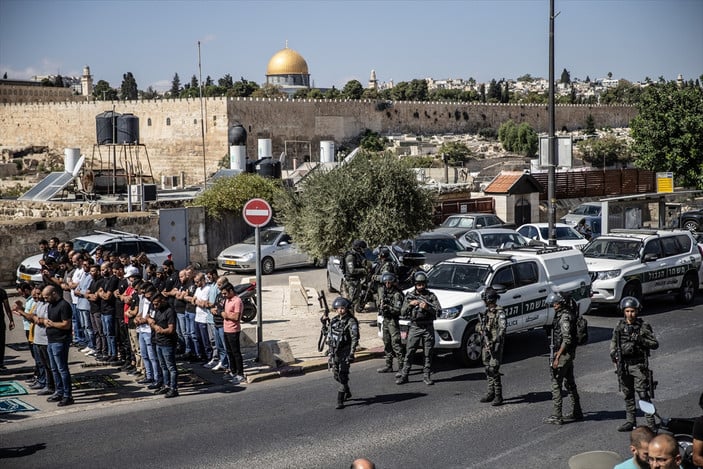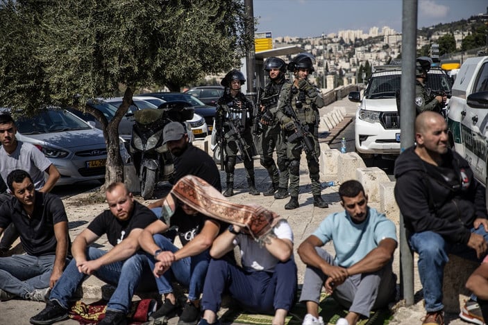 Cuma namazı öncesi kutsal mekanın girişlerini kapatan İsrail polisi, namaz kılmak için gelen Filistinli Müslümanların Mescid-i Aksa'ya girmesine engel oldu.