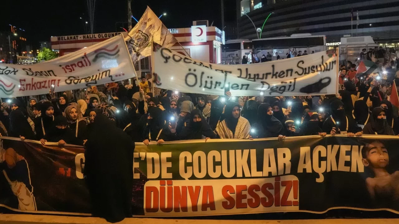 Yürüyüş sırasında grup üyeleri tekbir getirdi, İsrail karşıtı sloganlar attı.