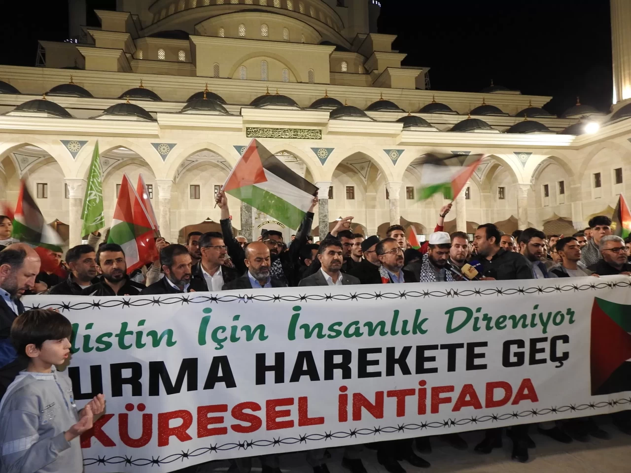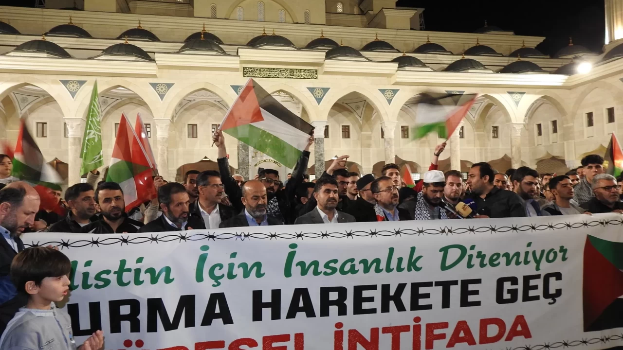 Teravih namazının ardından işgalci İsrail’in Gazze’ye yönelik saldırıları protesto edilerek şehit olanlar için dua edildi. İsrail ordusunun aylardır saldırdığı Gazze’de devam eden soykırımı kınamak için cami avlusunda toplanan kalabalık sık sık tekbir getirdi ve "Kahrolsun İsrail" sloganları attı.