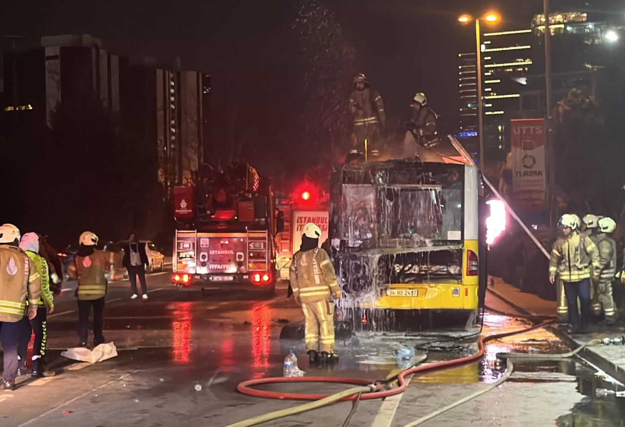 Beşiktaş'ta İETT'ye bağlı özel halk otobüsünde çıkan yangın itfaiye ekiplerince söndürülürken, araç kullanılamaz hale geldi.
