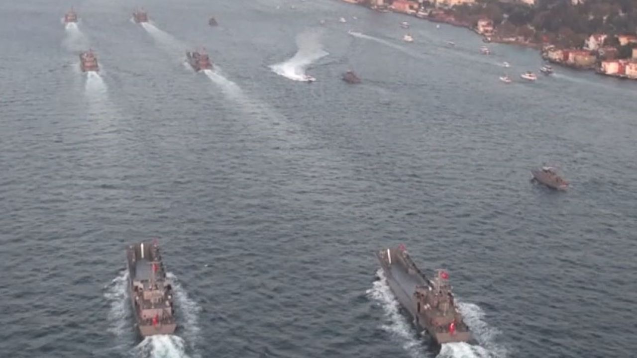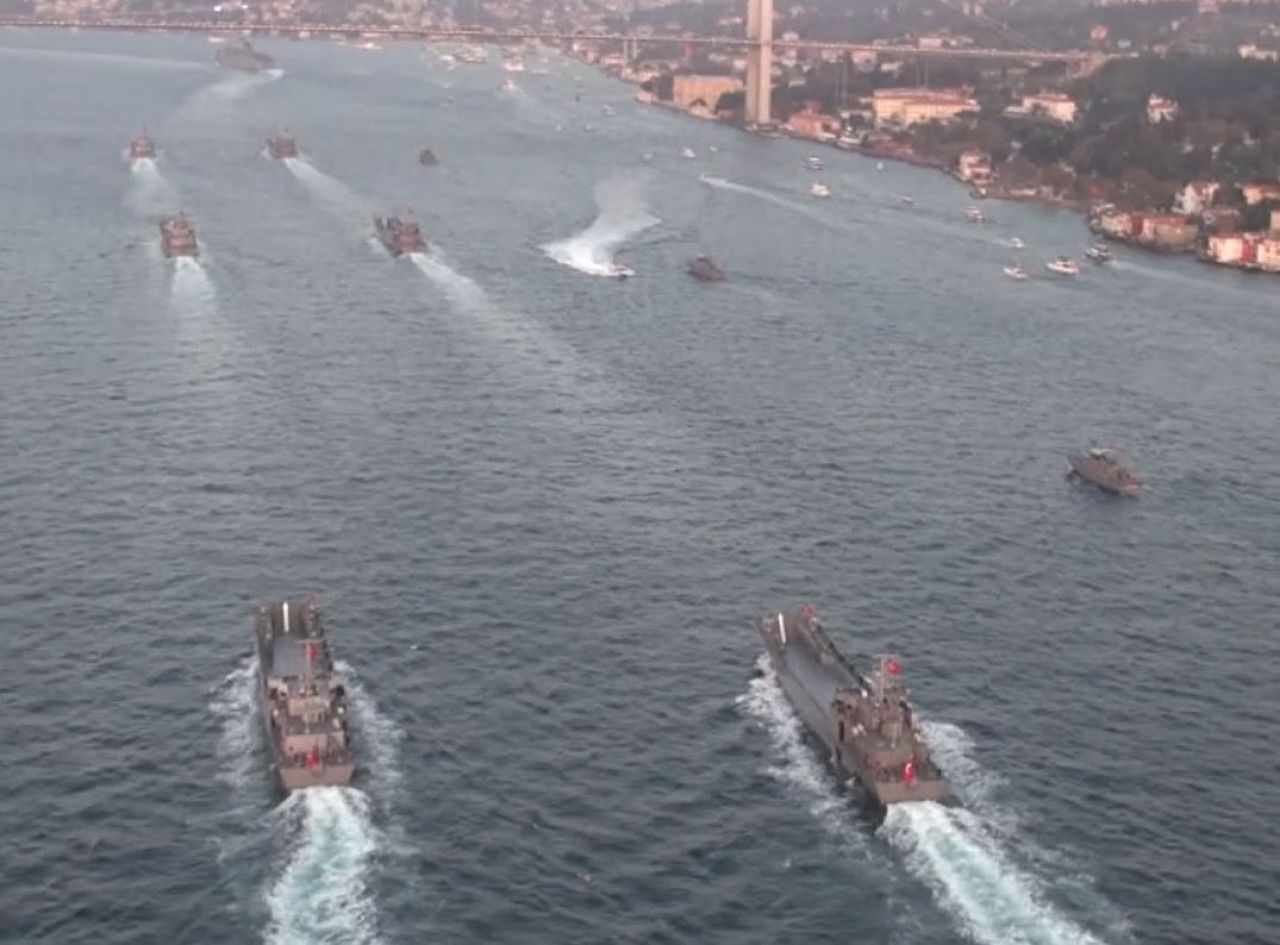 Cumhuriyet’in 100. yılı dolayısıyla Milli Savunma Bakanlığına bağlı 100 gemi, İstanbul Boğazı’nda geçiş töreni yapıldı. Geçiş töreni helikopterle havadan görüntülendi. 100 geminin gökyüzünden İstanbul Boğazı’na yansıyan anları büyük beğeni topladı.