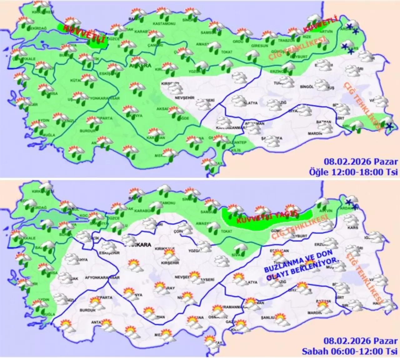MGM yağışların öğleden önce Doğu Karadeniz'de; öğleden sonra ise Marmara'da kuvvetli olacağı uyarısı yaptı.