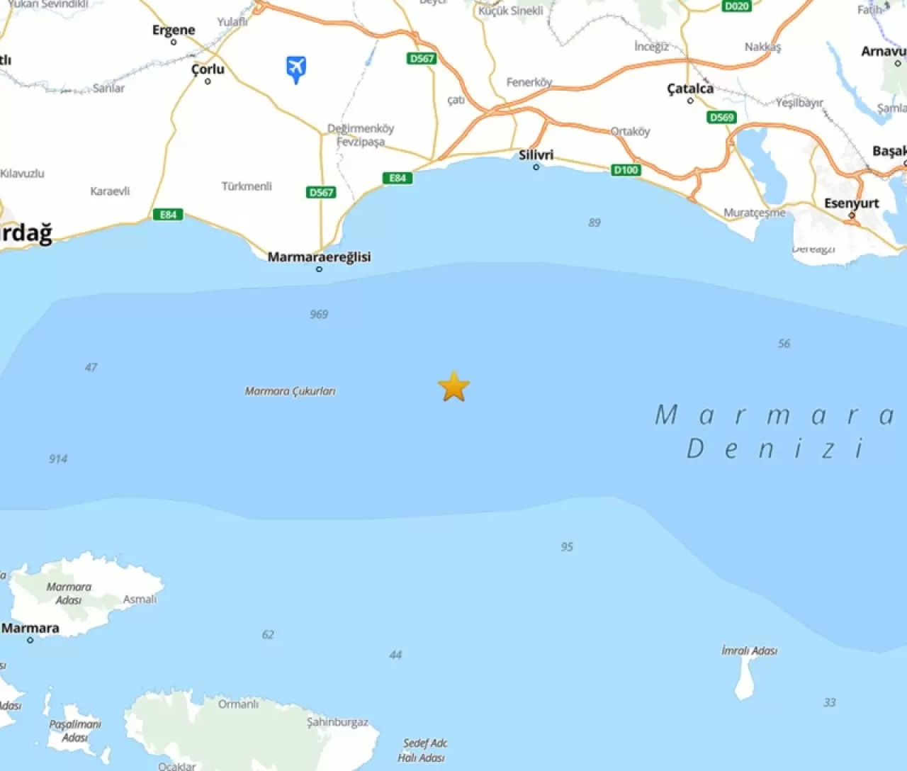 Afet ve Acil Durum Yönetimi Başkanlığı'ndan (AFAD) yapılan açıklamada, bugün saat 12.49'da Marmara Denizi'nde Silivri açıklarında 6,2 büyüklüğünde deprem meydana geldiği depremin, Kuzey Anadolu Fay Zonu'nun Orta Marmara içinden geçen segmenti üzerinde gerçekleştiği belirtildi.