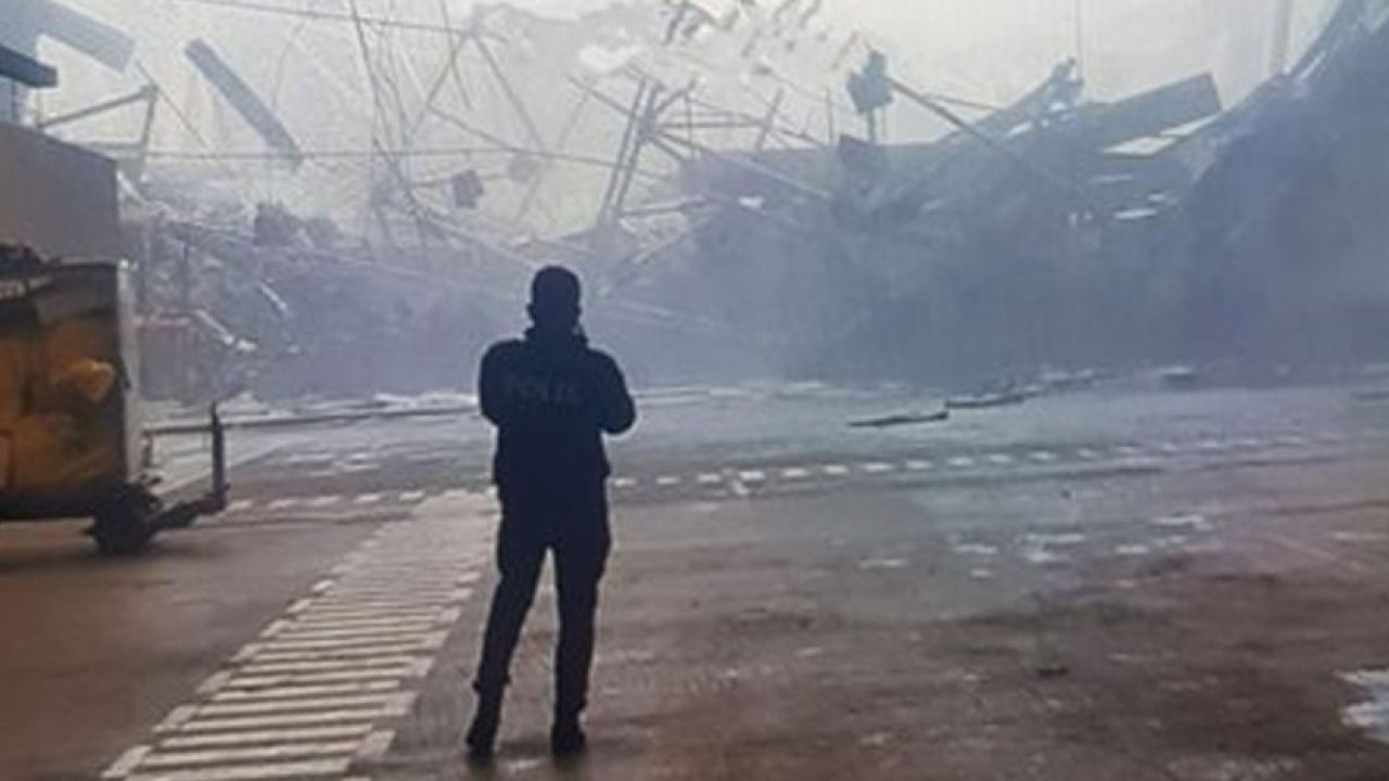 İstanbul Havalimanı'nda bir süredir inşaatı süren kargo terminali yoğun kar yağışı ve fırtına nedeniyle çöktü.