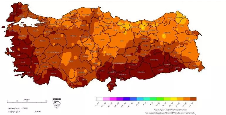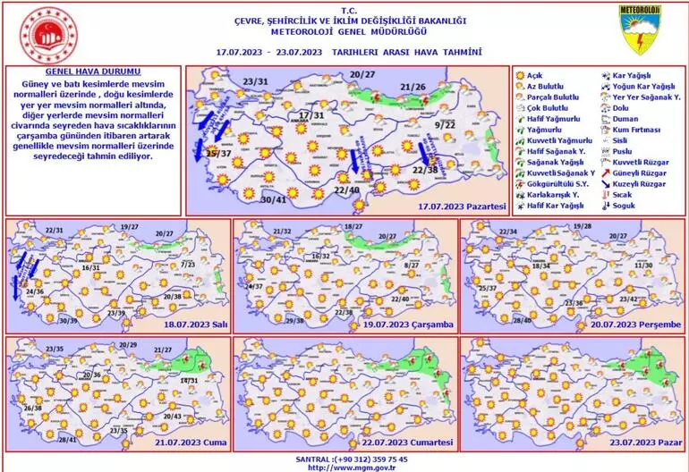Güney ve batı kesimlerde mevsim normalleri üzerinde, doğu kesimlerde yer yer mevsim normalleri altında, diğer yerlerde mevsim normalleri civarında seyreden hava sıcaklıklarının, çarşamba gününden itibaren artarak genellikle mevsim normalleri üzerinde seyredeceği tahmin ediliyor.