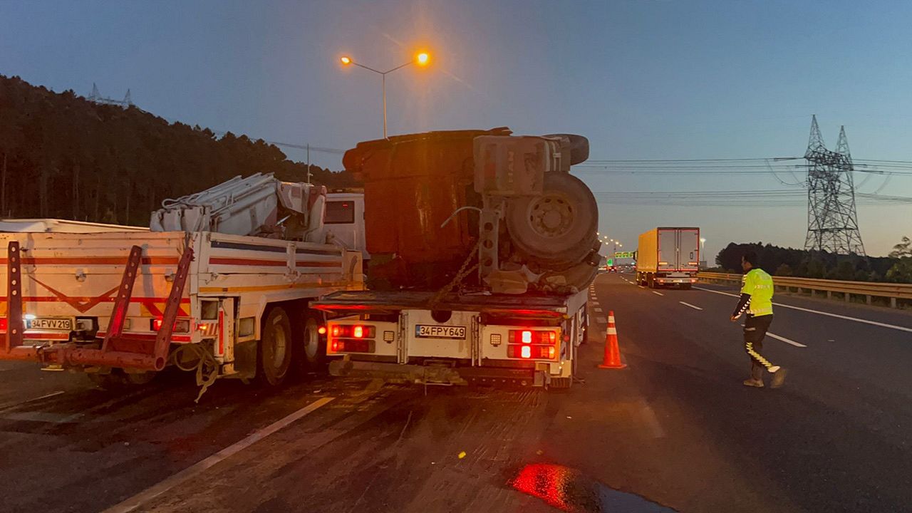 Kaza, saat 18.00 sıralarında Kuzey Marmara Otoyolu Mecidiye mevkiinde meydana geldi. AY'nin kullandığı 34 DKE 878 plakalı TIR, İstanbul istikametine seyir halindeyken şoförün direksiyon hâkimiyetini kaybetmesi nedeniyle bariyerleri aşıp karşı şeride donanım devrildi. İhbar üzerine olay yerine polis, jandarma, itfaiye ve sağlık ekipleri sevk edildi. TIR'da sıkışan şoför, polis ekipleri tarafından kurtarıldı. AY sağlık ekipleri olay yerinde yapılan ilk müdahalenin ardından ambulansla hastaneye kaldırıldı. Kaza nedeniyle trafik yoğunluğu oluşurken, devrilen TIR'ın olayının ardından trafik normale döndü. Kazada yaralanan AY'nin sağlık biriminin iyi olduğu öğrenildi.