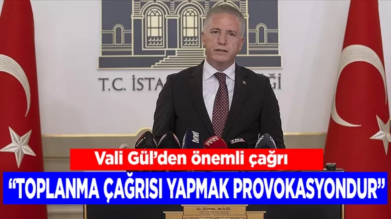 Vali Gül, sosyal medya hesabından yaptığı paylaşımda, "Taksim Meydanı ve İstiklal Caddesi’nde güvenlik gerekçesiyle uzun yıllardır hiçbir gösteriye izin verilmemektedir. Bu durum, ilgili kişi ve gruplara defalarca açıkça bildirilmiştir. İstanbul'un pek çok farklı noktasında gösteri ve toplanma hakkı serbestken, güvenlik gerekçesiyle sınırlı tutulan bu alanda ısrarla toplanma çağrısı yapmak, en hafif tabiriyle provokasyondur. Filistinli kardeşlerimizin kutsal davasını kendi siyasi hesaplarına alet edenleri kınıyoruz" ifadesini kullandı.