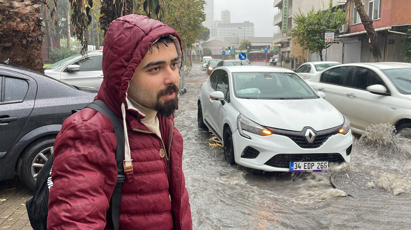 Aracıyla caddede mahsur kalan İbrahim Yavuz Çakır, U dönüşü yapmak isterken aracının suda mahsur kaldığını ve çalışmadığını söyledi.