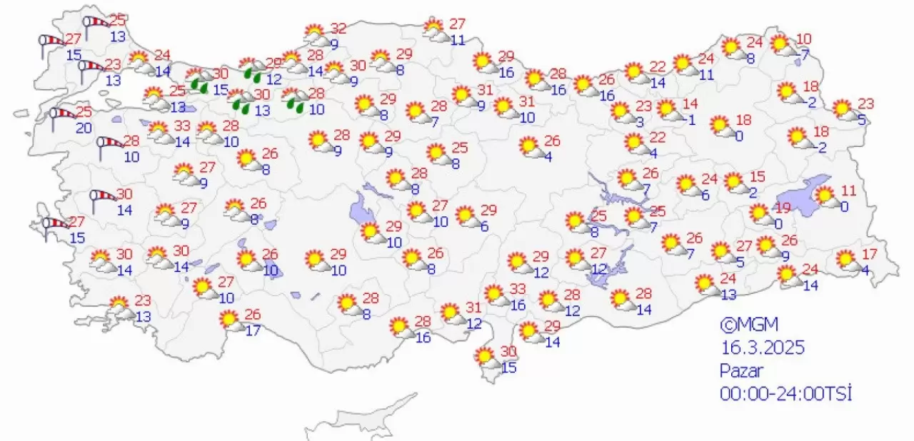 16 MART PAZAR GÜNÜ HAVA DURUMU