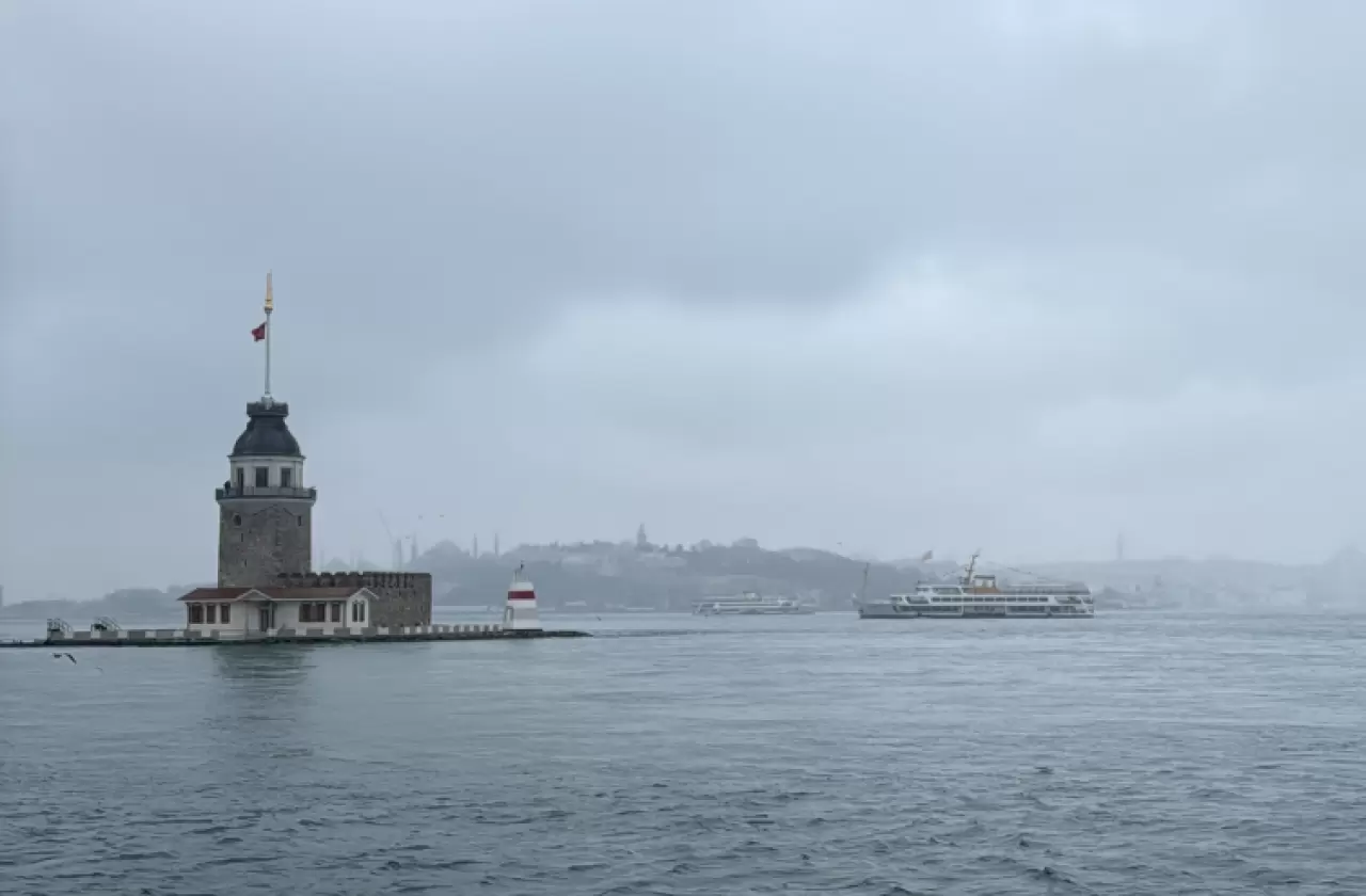 Yüksek katlı binaların üst katları sis nedeniyle görünmez hale gelirken, Boğaz hattındaki tarihi yapılar da sis altında kaldı.