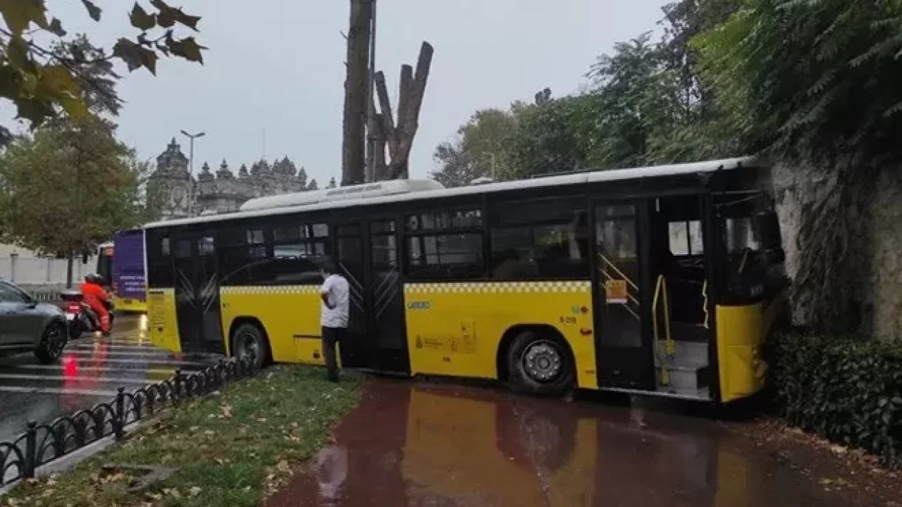 KÜÇÜKÇEKMECE'DE İETT OTOBÜSÜ KORKULUKLARA ÇARPTI