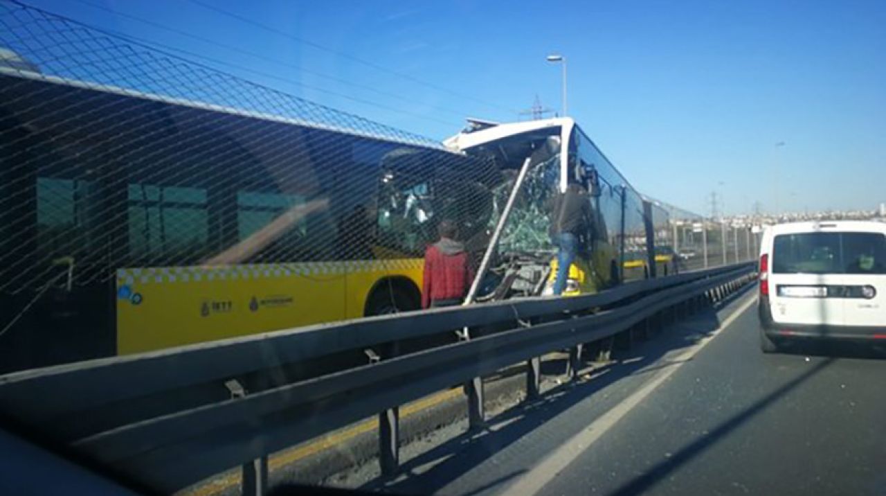 Kaza nedeniyle metrobüs seferleri iki yönlü olarak durdu.