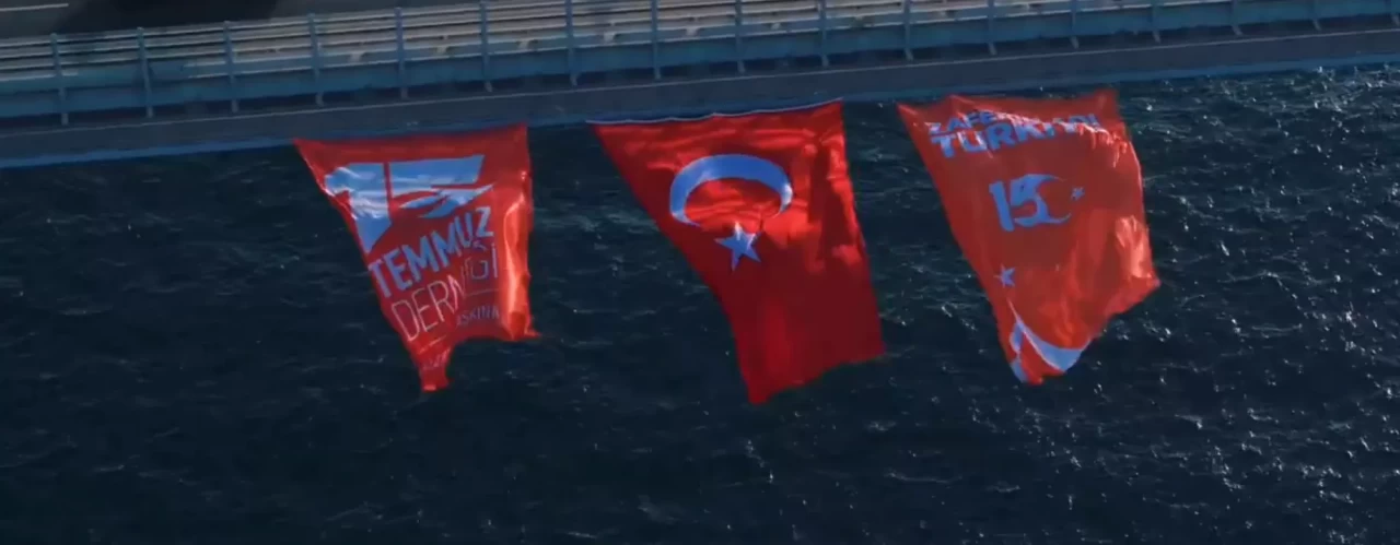 15 Temmuz 2016’daki hain darbe girişiminin 9’uncu yıl dönümünde, İstanbul’un simge noktalarından biri olan 15 Temmuz Şehitler Köprüsü’nde anlamlı bir tören düzenlendi. İstanbul Valiliği ile 15 Temmuz Derneği iş birliğinde gerçekleştirilen törende, şehitler anısına dev Türk bayrağı ve 15 Temmuz temalı bayraklar köprüye asıldı.