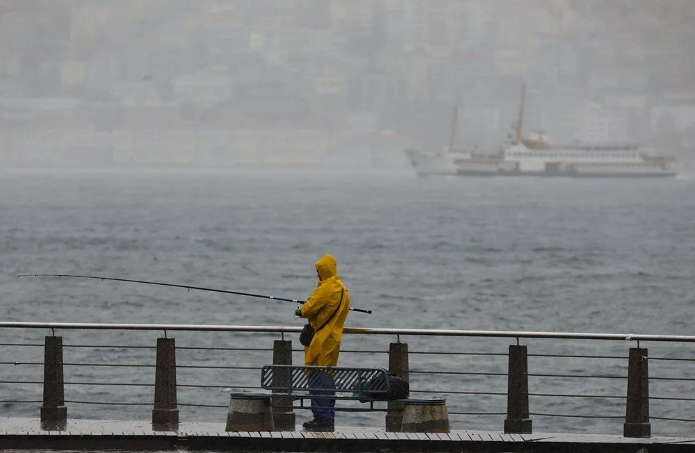 İstiklal Caddesi'nde yağış nedeniyle zor anlar yaşanırken Beşiktaş'ta sahilde balık tutanlar dikkat çekti.