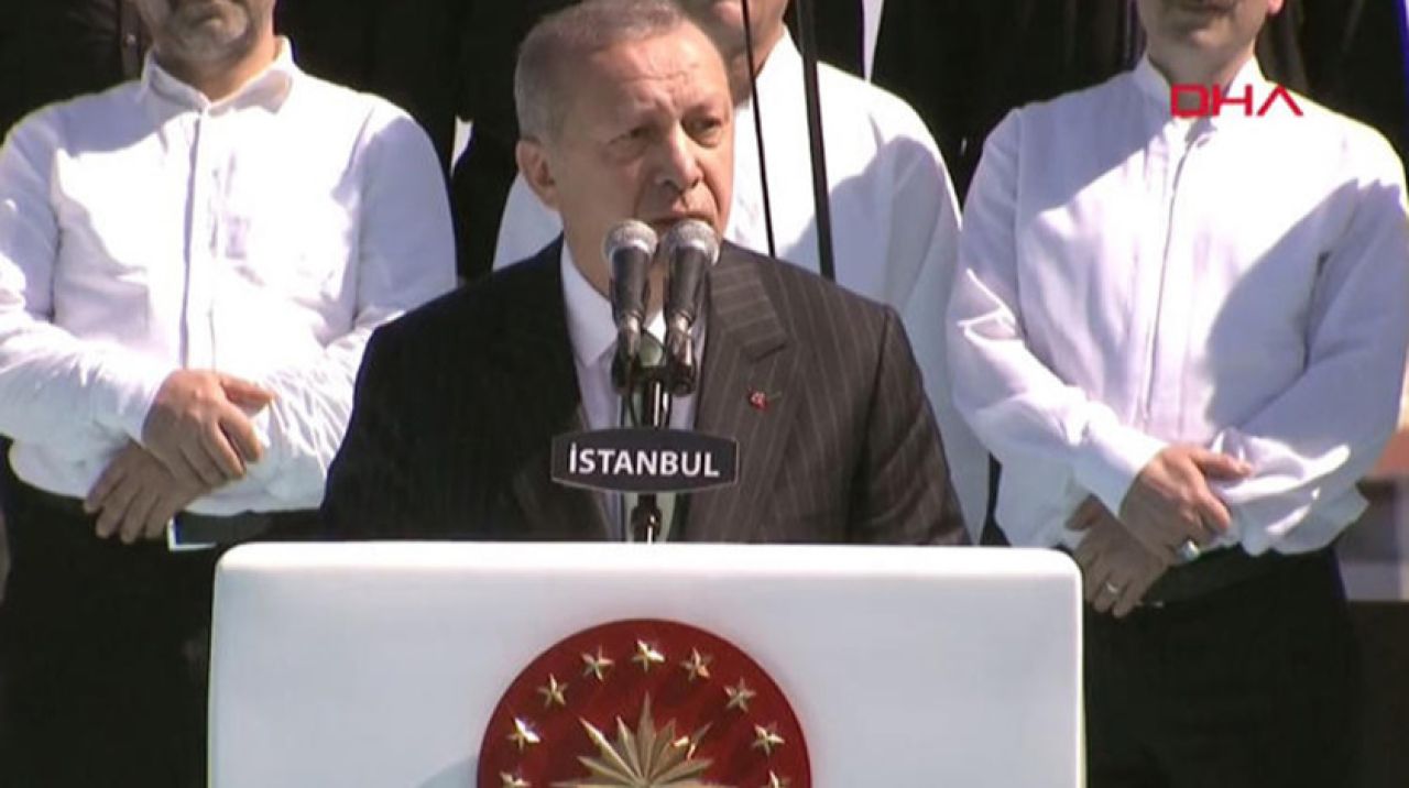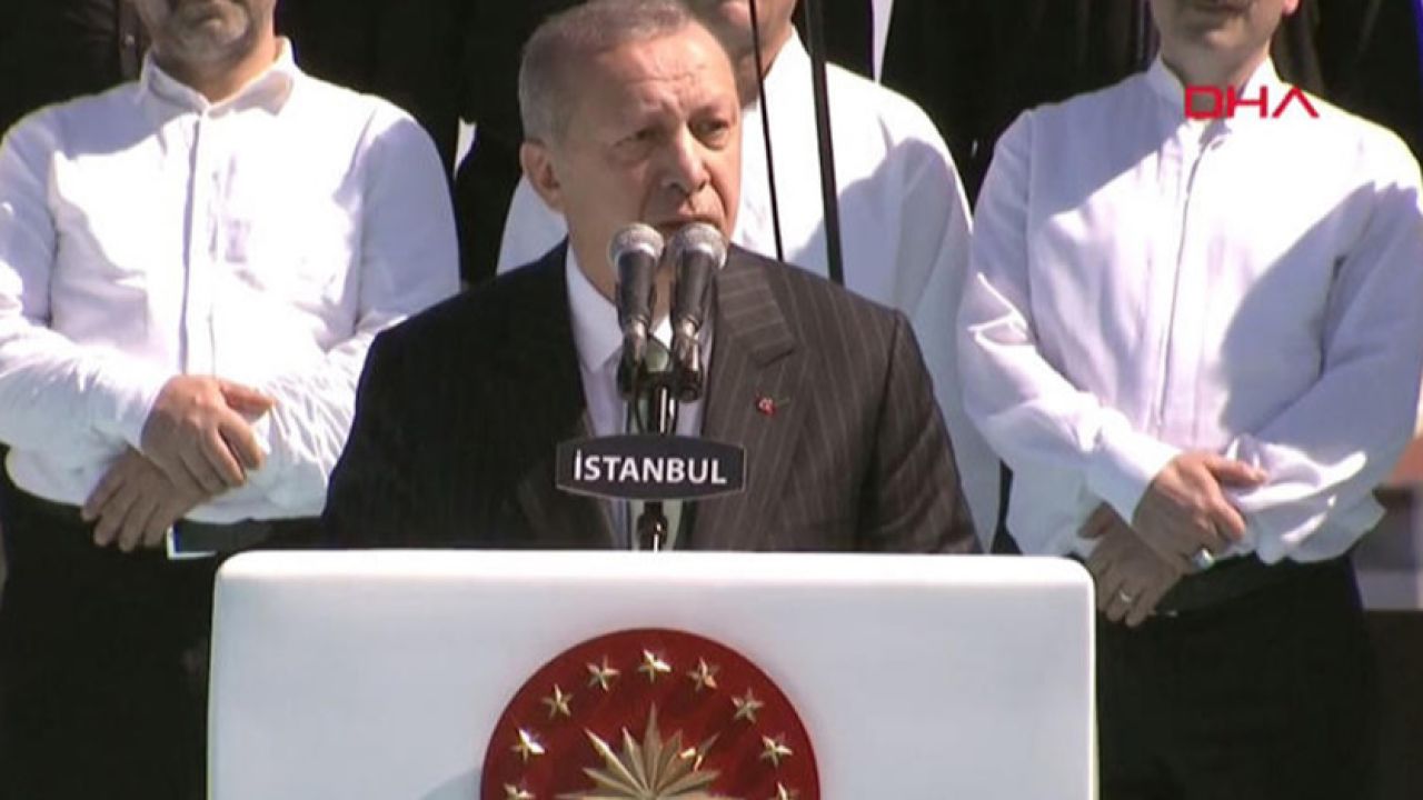 Yurt dışından ülkemizi teşrif ederek bu sevinçli anımıza ortak olan kıymetli misafirlerimize, şahsım, milletim adına hoş geldiniz diyorum. Bugün bizleri bir araya getiren, gönüllerimizi buluşturan yüce Allah’a hamd-ü senalar ediyorum. Resmi açılışını yaptığımız Büyük Çamlıca Camimizin İstanbul için ülkemiz için hayırlara vesile olmasını diliyorum.