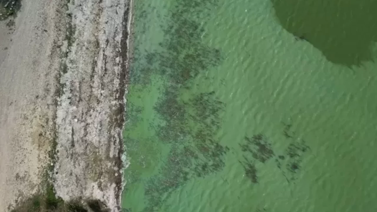 Göldeki renk değişimi ve kıyıda oluşan köpük ise havadan görüntülendi.