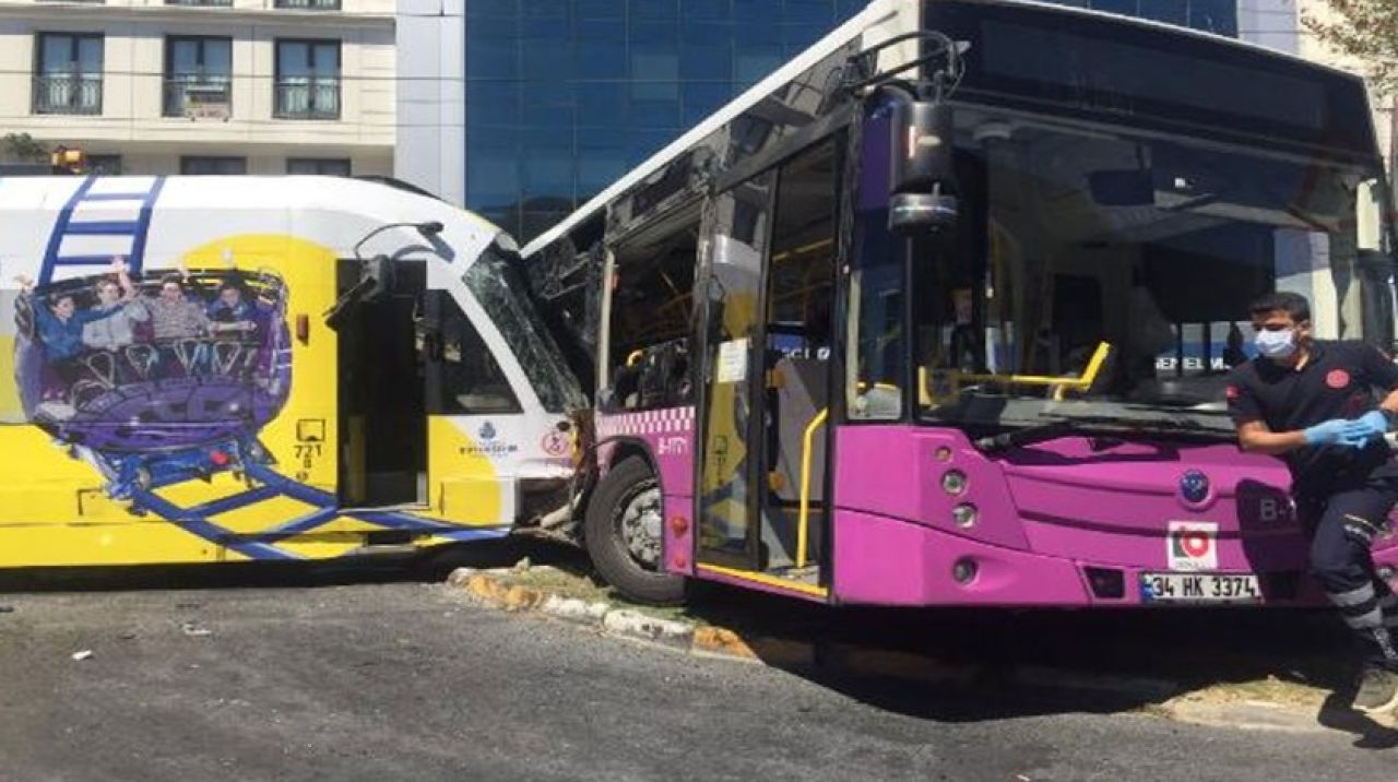 İstanbul Tophane'de Bağcılar Kabataş seferini yapan tramvay dönüş yapan halk otobüsüyle çarpıştı.