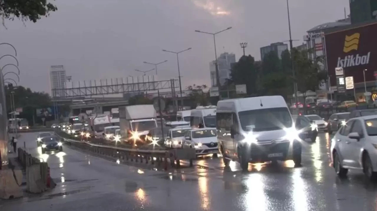 Yağış nedeniyle otobüs duraklarında yoğunluk oluşurken, trafikte de yer yer aksamalar meydana geldi.